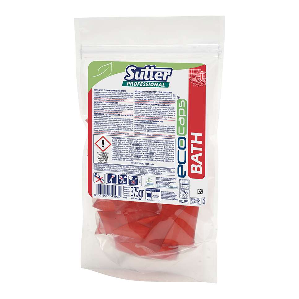 Detergente desincrustante para casas de banho com sistema em cápsulas de 15 gr hidrossolúveis